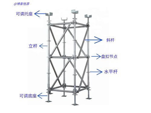 盤扣式腳手架是一種廣泛應用于建筑、橋梁、隧道等工程領域的支撐系統(tǒng)。它由立桿、水平桿、斜桿、盤扣節(jié)點、連接套筒、扣件頭和可調托座等構件組成,盤扣腳手架構件的材質對于整個腳手架的穩(wěn)定性和承載能力至關重要。