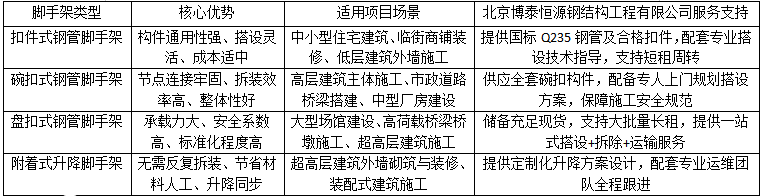 北京博泰恒源鋼結(jié)構(gòu)工程有限公司憑借豐富的行業(yè)經(jīng)驗,能夠針對不同項目的施工需求、場地條件、預(yù)算范圍,為客戶提供定制化的腳手架解決方案。無論是常規(guī)的扣件式鋼管腳手架租賃,還是盤扣式腳手架供應(yīng),都以可靠的品質(zhì)的服務(wù),成為眾多建筑企業(yè)的合作伙伴,為建筑工程的順利推進筑牢安全根基。